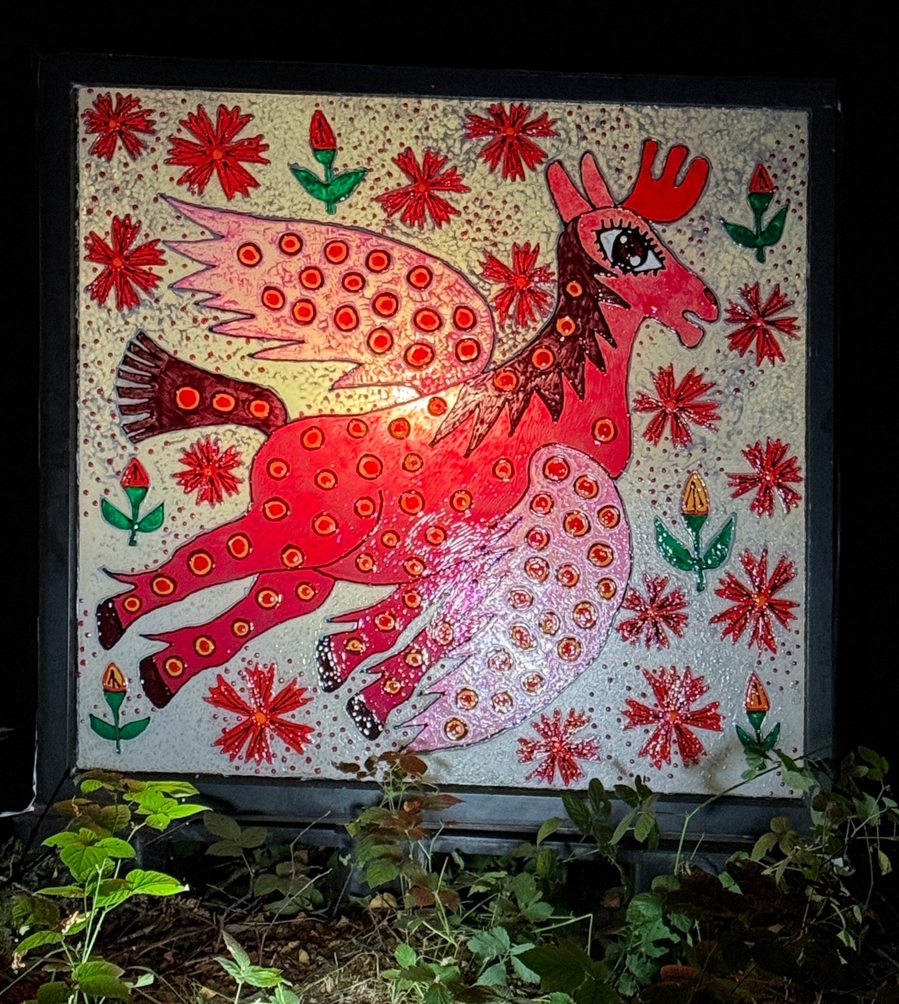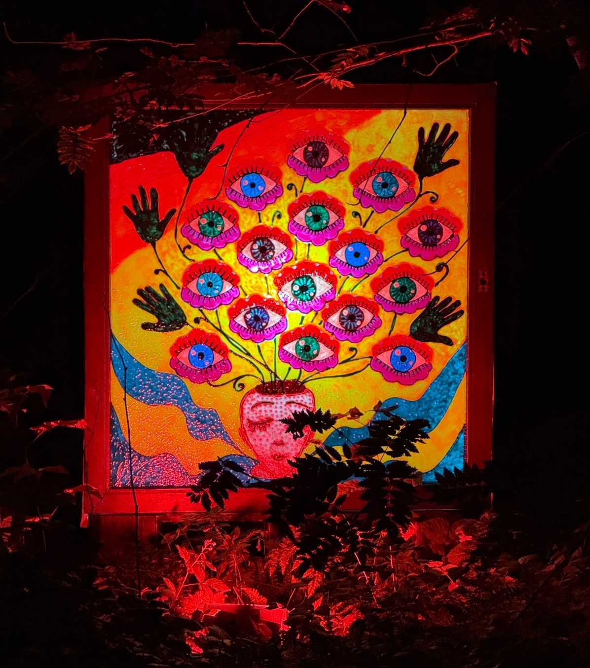 Diese wunderschönen und farbenfrohen Bilder – gemalt auf alten Glasfenstern - waren dieses Jahr beim ParkFunkeln im Norderstedter Stadtpark zu sehen. Sie stammen von der ukrainischen Künstlerin Nataliia Reznichenko, die sich bei ihrer Arbeit von der berühmten Malerin Marija Prymatschenko inspirieren ließ. Die Werke entstanden im Rahmen einer Gemeinschaftsproduktion, an der sich Teenager und Erwachsene mit großer Hingabe beteiligt haben.  Es ist ein beeindruckendes Beispiel dafür, wie Kunst Menschen über Generationen hinweg verbinden kann.