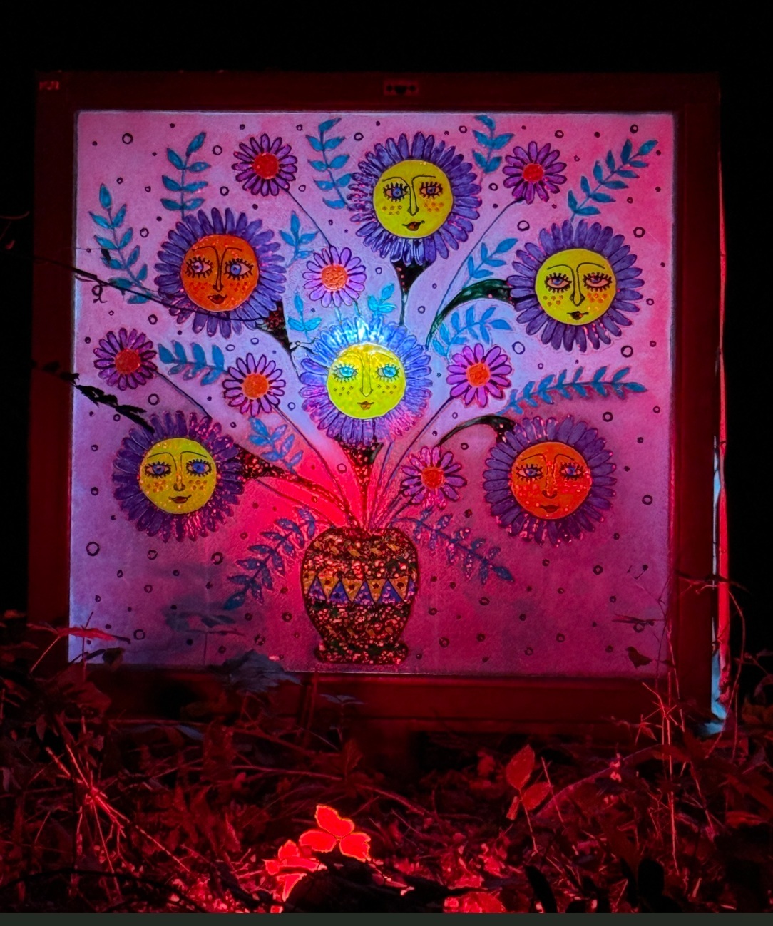 Diese wunderschönen und farbenfrohen Bilder – gemalt auf alten Glasfenstern - waren dieses Jahr beim ParkFunkeln im Norderstedter Stadtpark zu sehen. Sie stammen von der ukrainischen Künstlerin Nataliia Reznichenko, die sich bei ihrer Arbeit von der berühmten Malerin Marija Prymatschenko inspirieren ließ. Die Werke entstanden im Rahmen einer Gemeinschaftsproduktion, an der sich Teenager und Erwachsene mit großer Hingabe beteiligt haben. Es ist ein beeindruckendes Beispiel dafür, wie Kunst Menschen über Generationen hinweg verbinden kann.
